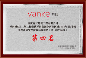 2016年度万科城E区荣获第二季度第四名