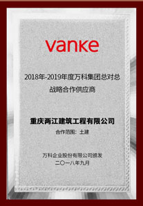 荣获万科集团南方区域2019-2020年度最佳新供方